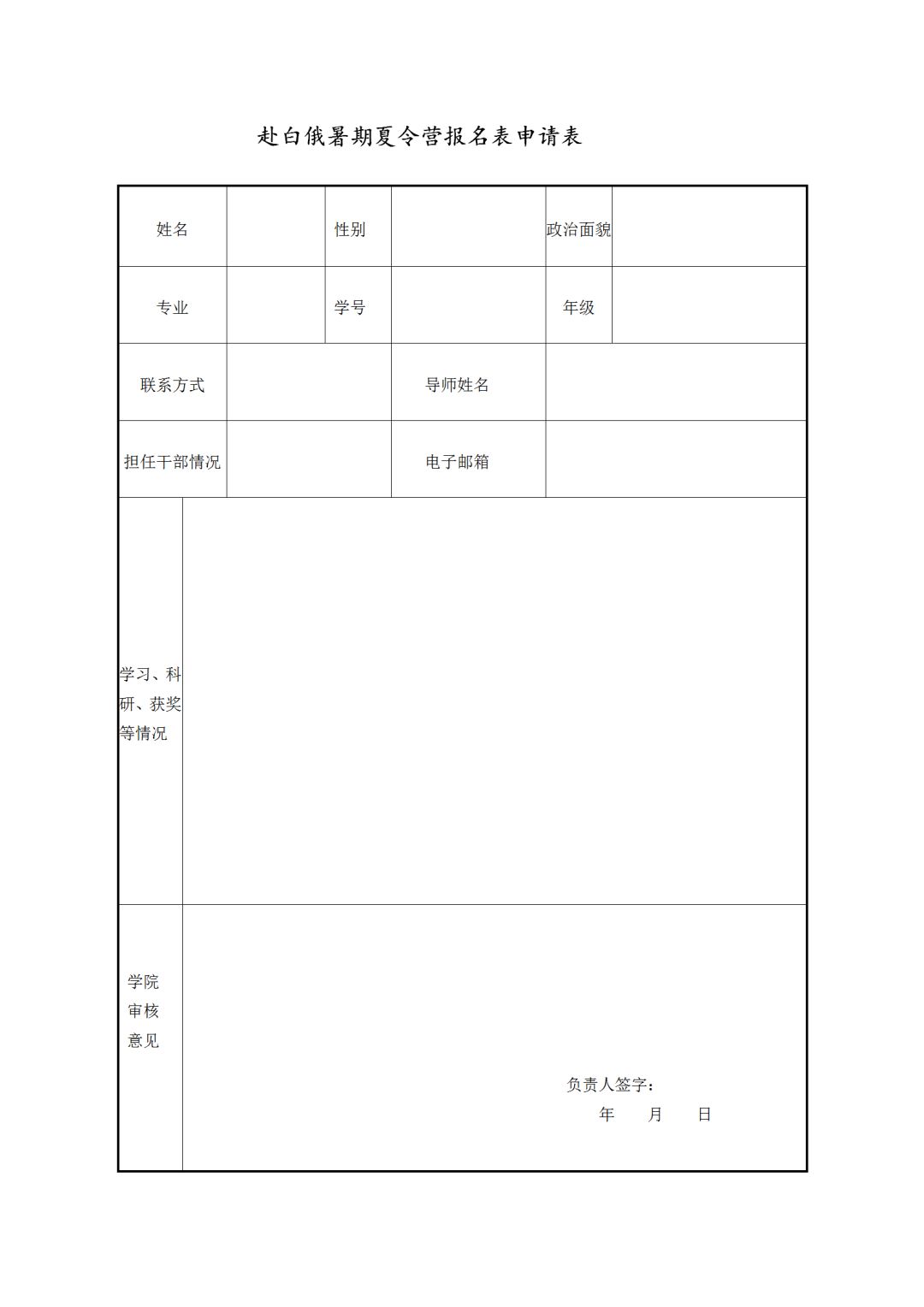 申请表模板如下: