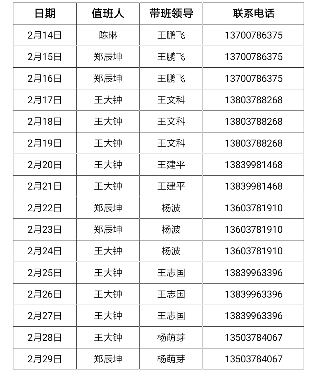 3.值班人员和带班领导保持手机畅通