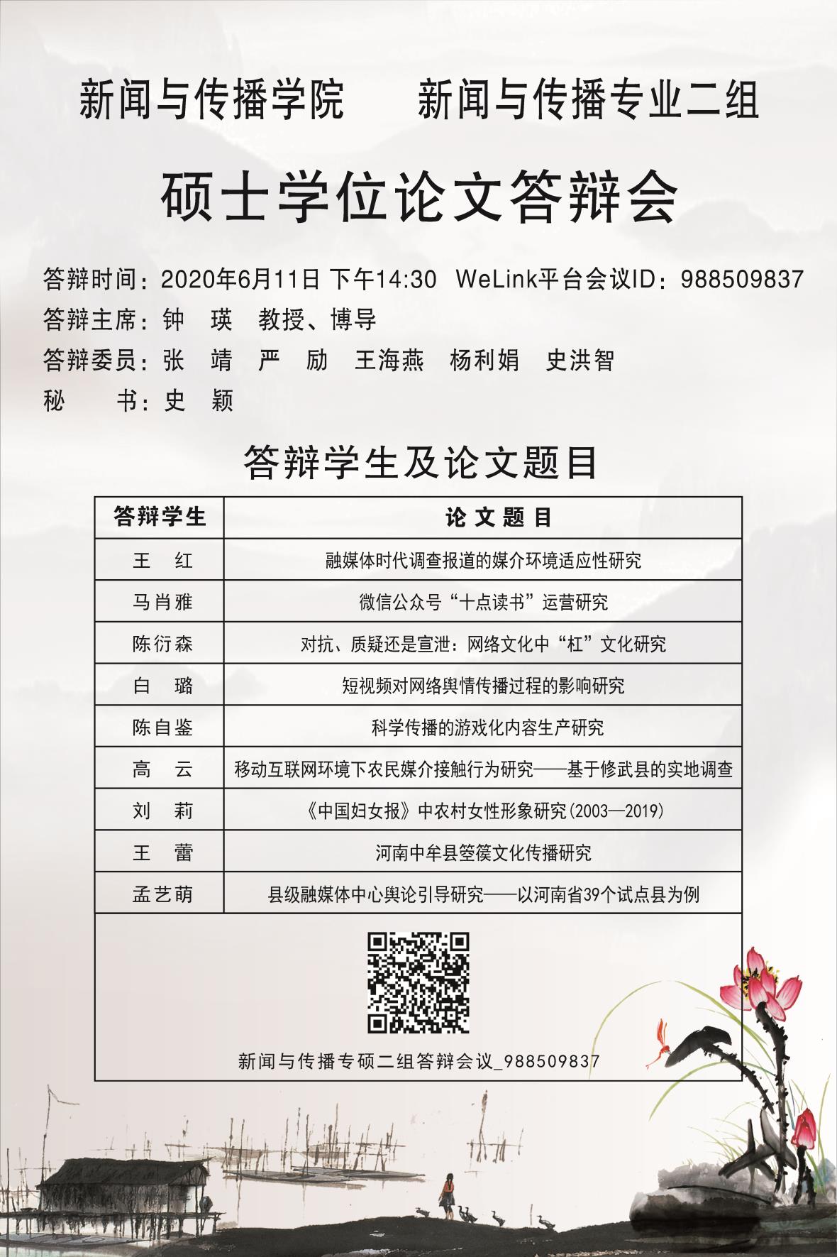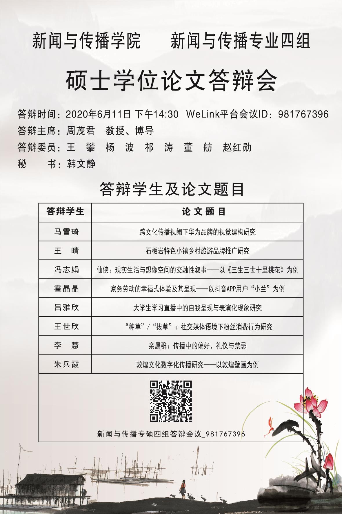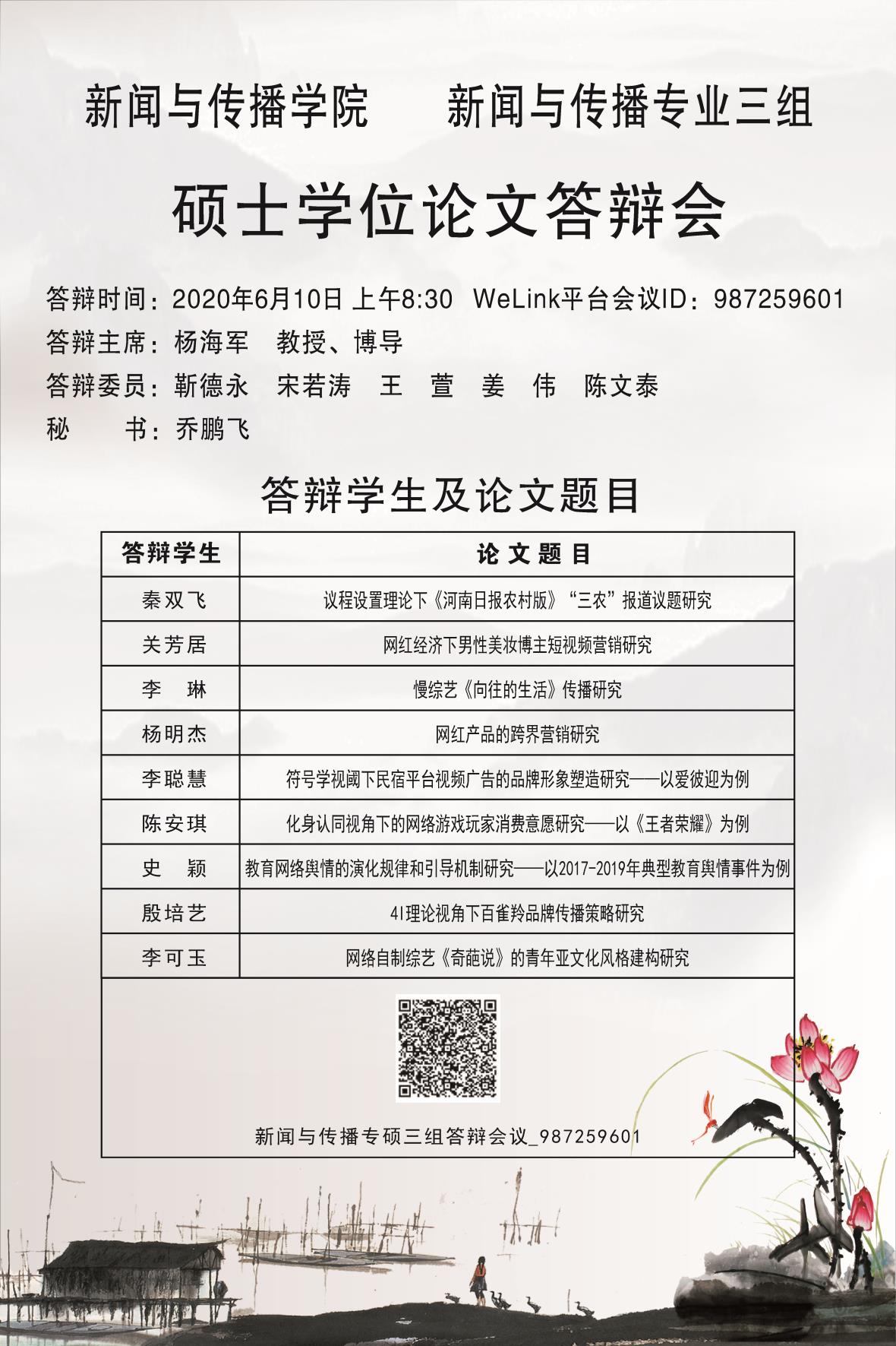 必赢官网硕士研究生学位论文答辩会安排公示