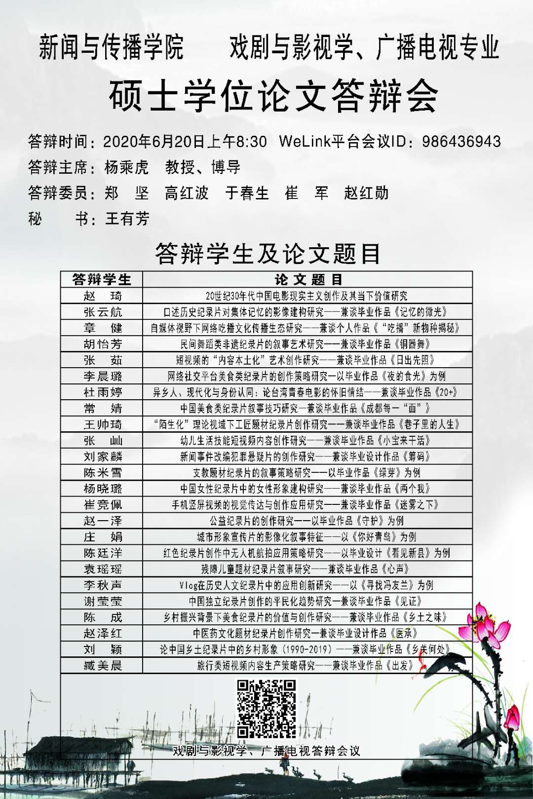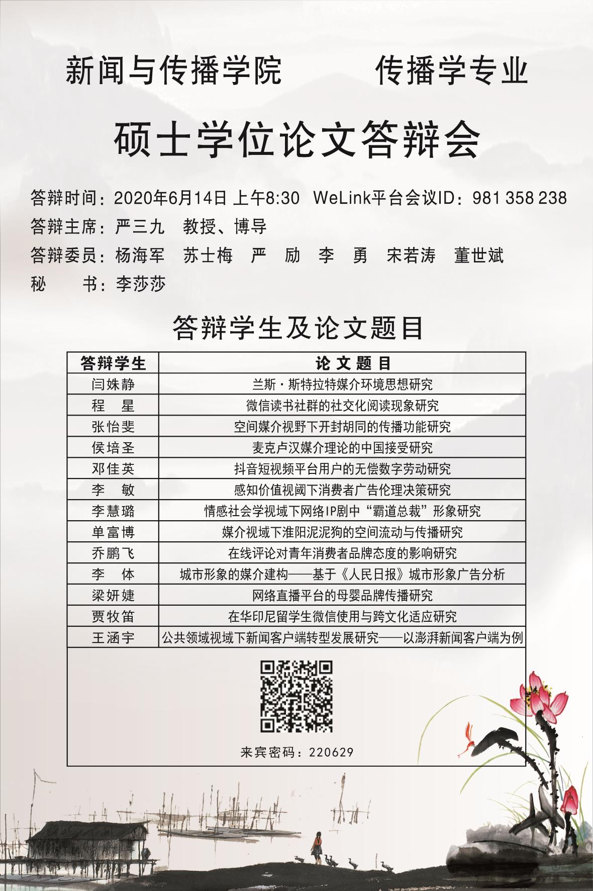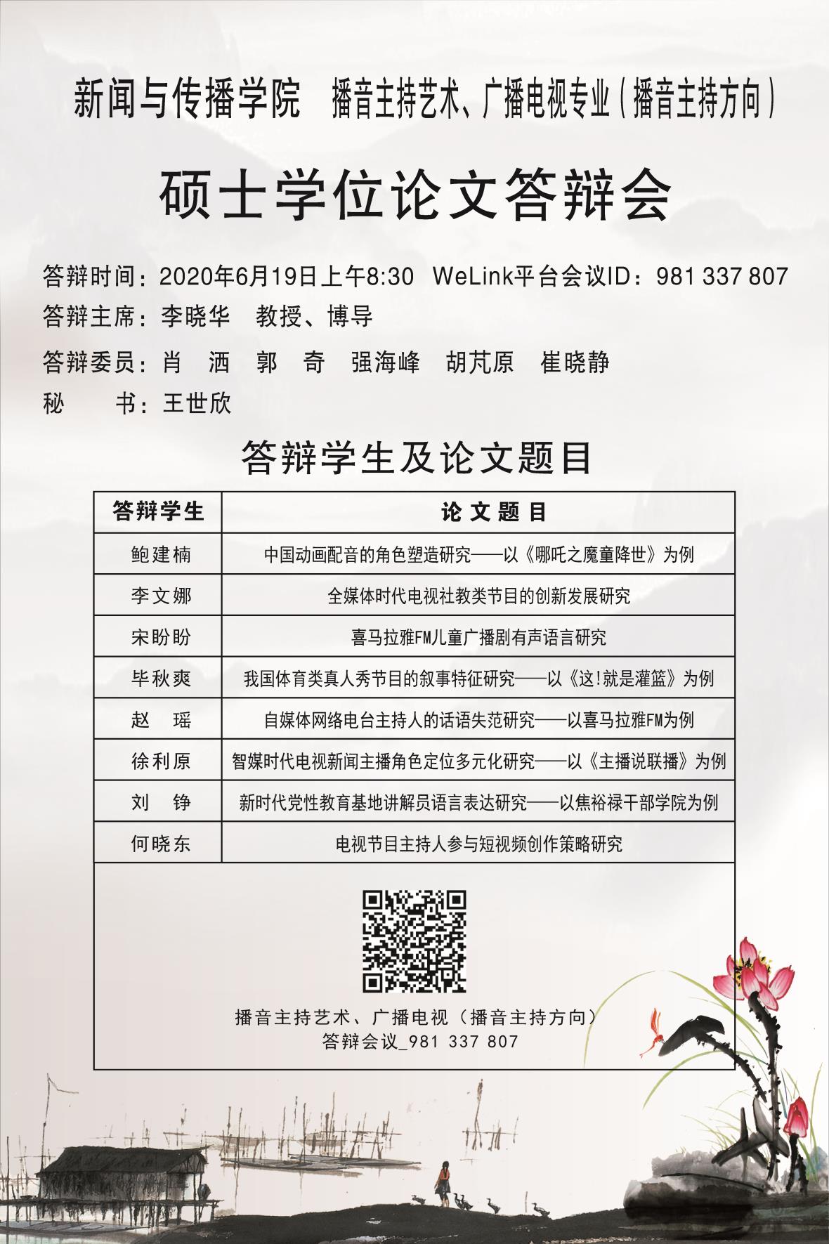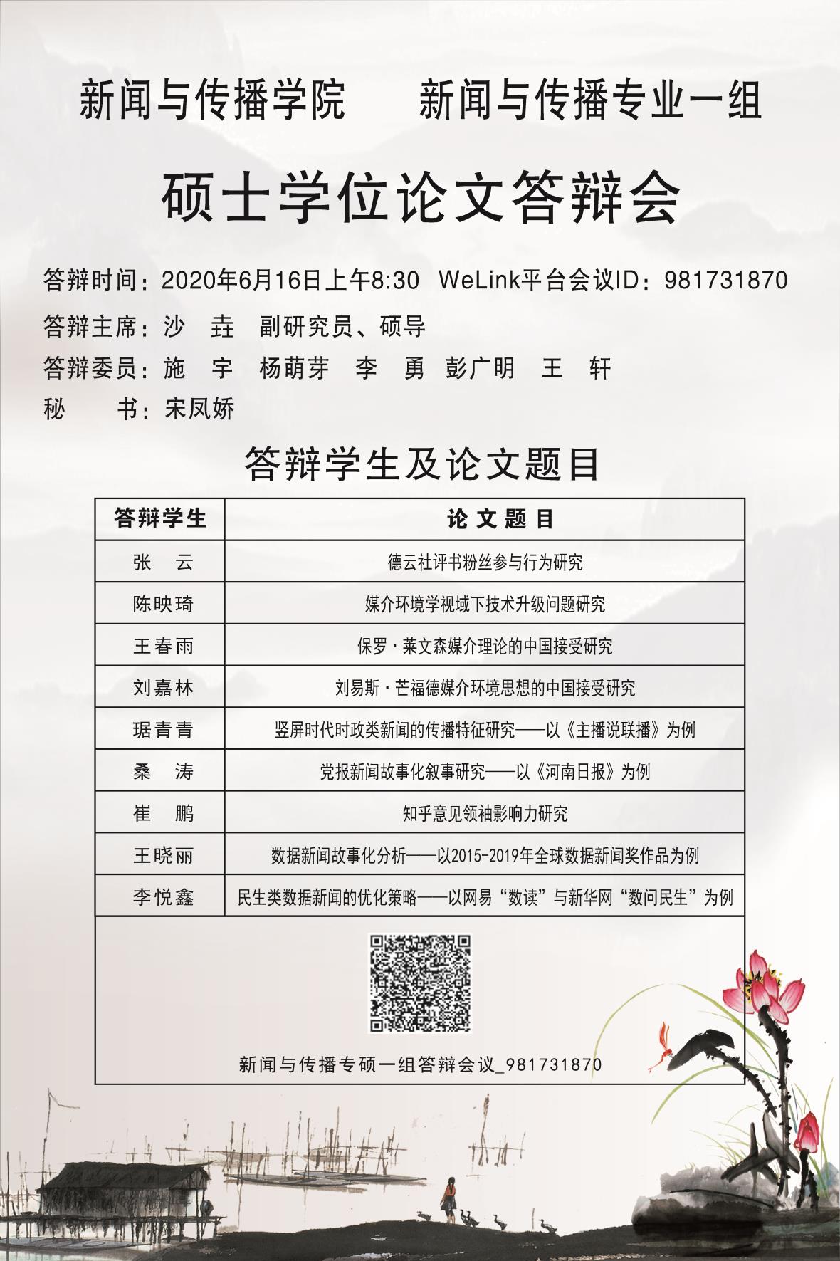 必赢官网硕士研究生学位论文答辩会安排公示